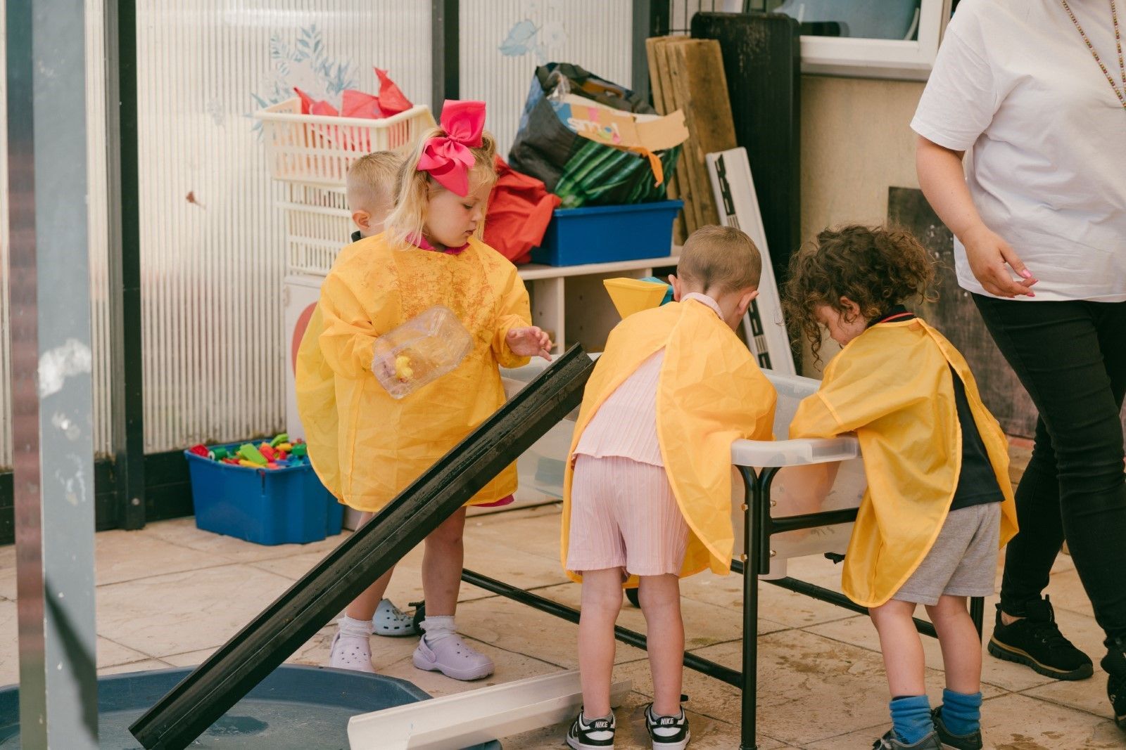 We love to use the outside play area whatever the weather. It offers plenty of opportunities to explore the environment, as well as a productive growing patch and digging area.